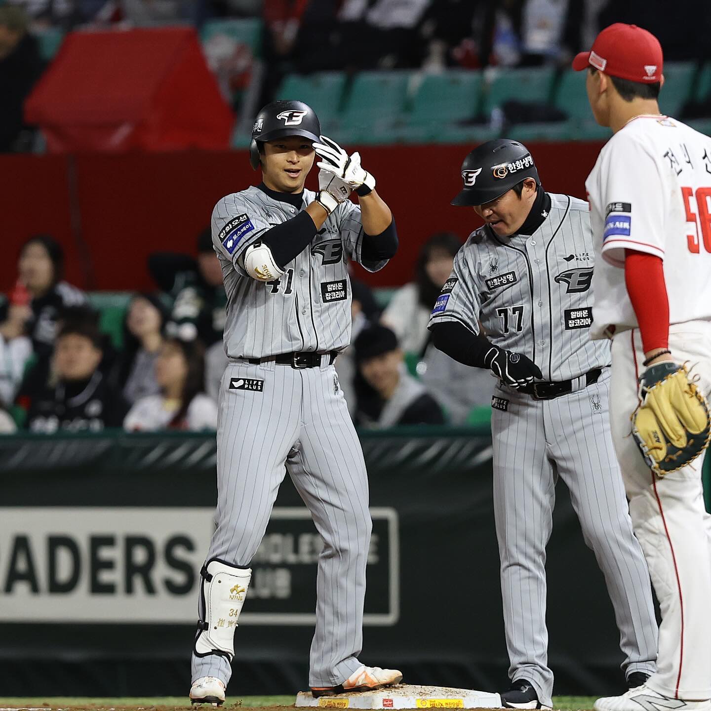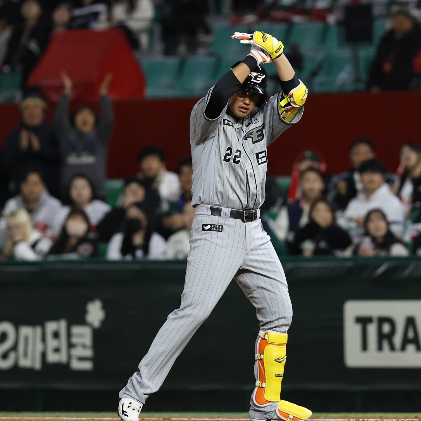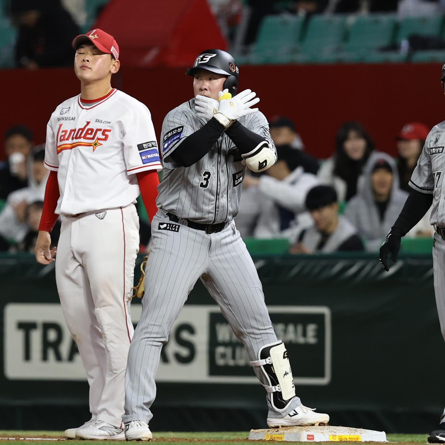 처음으로 원정팀 덕아웃에서 인천SSG랜더스필드의 그라운드로 나선 김강민. 1루와 3루 양측 관중 모두가 한 마음으로 함께 외치는 응원 소리에 화답하며 인사를 건넸습니다.