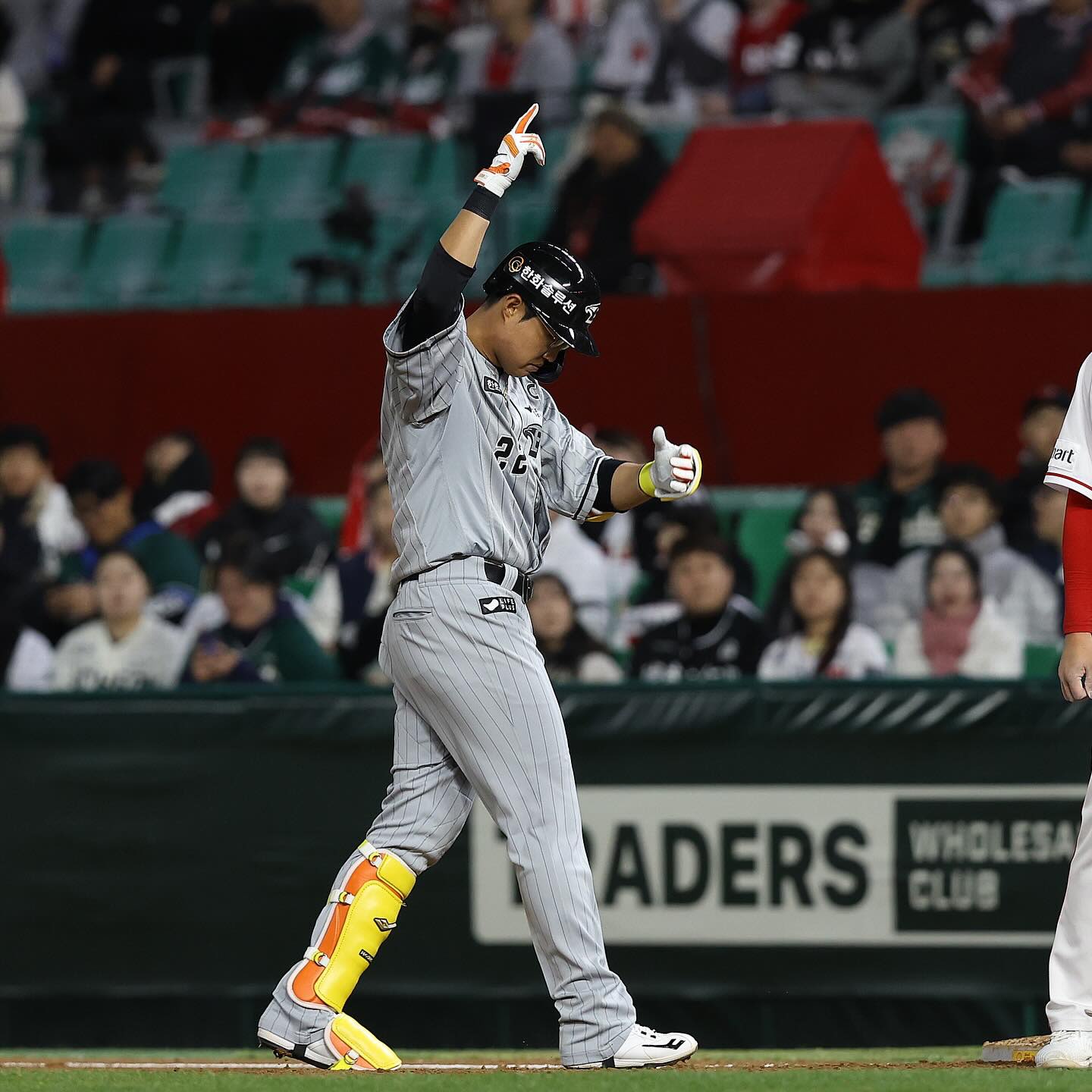 처음으로 원정팀 덕아웃에서 인천SSG랜더스필드의 그라운드로 나선 김강민. 1루와 3루 양측 관중 모두가 한 마음으로 함께 외치는 응원 소리에 화답하며 인사를 건넸습니다. (1)