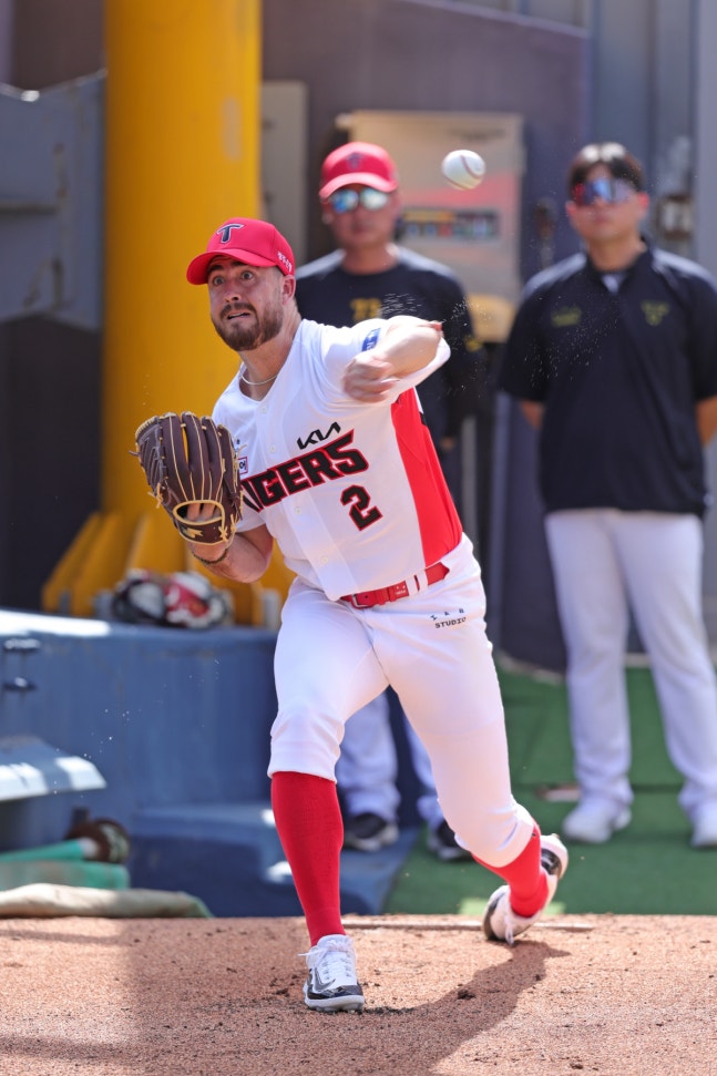 스타우트는 29일 광주 기아챔피언스필드에서 30개의 공을 던졌다. 포수 한준수와 호흡을 맞춘 스타우트는 직구를 비롯해 체인지업, 커터, 슬라이더 등 다양한 구종을 선보였다. 직구 최고 구속은 144㎞. KIA 이범호 감독 및 코치진이 스타우트의 투구를 면밀히 관찰했다.