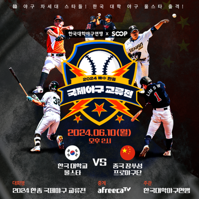 SOOP, 2024한중국제교류전 6월 10일 중계 한국대학교올스타vs 중국 장쑤성 프로야구단