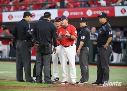 이날 키움과 롯데의 경기는 결과와 무관하게 '신(神)판'이 주인공이었다. 그 누구보다 많은 주목을 받았다. 명백한 '오심'을 바로잡기 위해 항의한 결과는 퇴장 난사였다. 심판의 판정이 존중받아야 하는 것은 마땅하다. 사람이기 때문에 실수도 할 수 있다. 하지만 같은 실수가 반복되는 오심 퍼레이드는 조금 다르다. 고개를 치켜세운 심판의 권위는 하늘을 찔렀다. 그 '권위'에 대해 다시 한번 생각을 해 볼 때다.