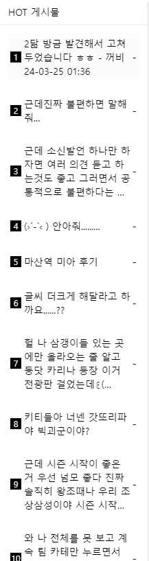 이건 진짜 개인적인 건의고 모두의 의견은 아닌데 혹시 옆에 핫게시물 대신에 온에어를 보여주는건 어려까요? (PC버전)