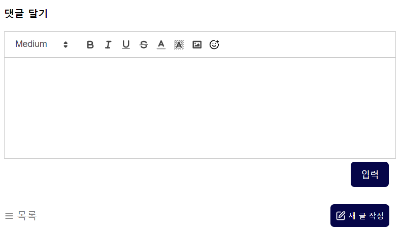 그리고 댓글 입력 버튼이 현재 위치가 아니라 댓글 작성하는 영역아래에 다른 div로 붙으면 더 좋을거 같고, 목록과 새글 작성이 같은 div로 묶이면 더 좋을 거 같아요!