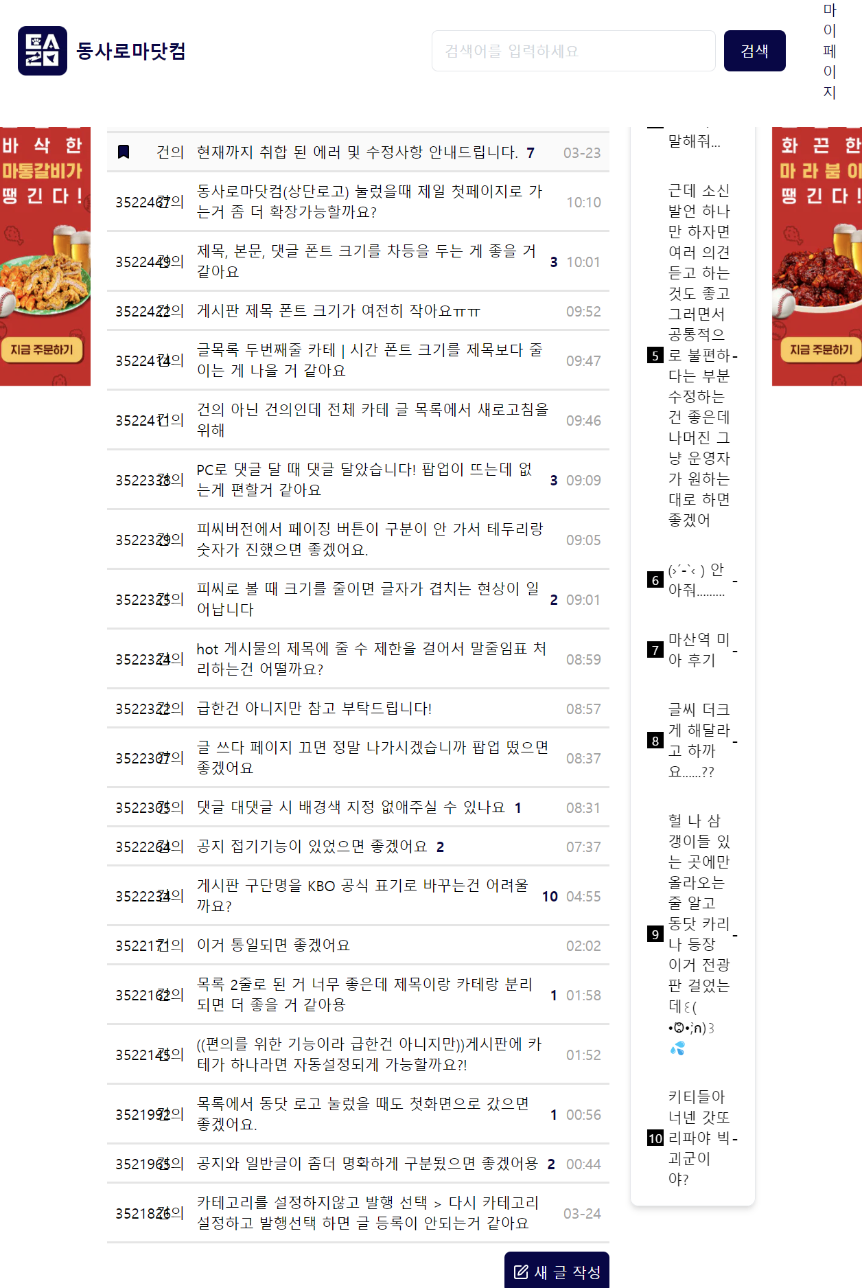 핫게 위치 변경 및 기타 건의 (0)
