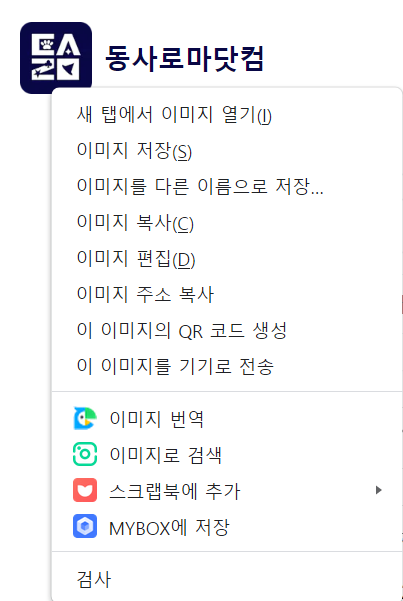 상단 동사로마닷컴 로고 영역 우클릭 시 새탭/새창에서 페이지 열기가 되면 좋겠어요