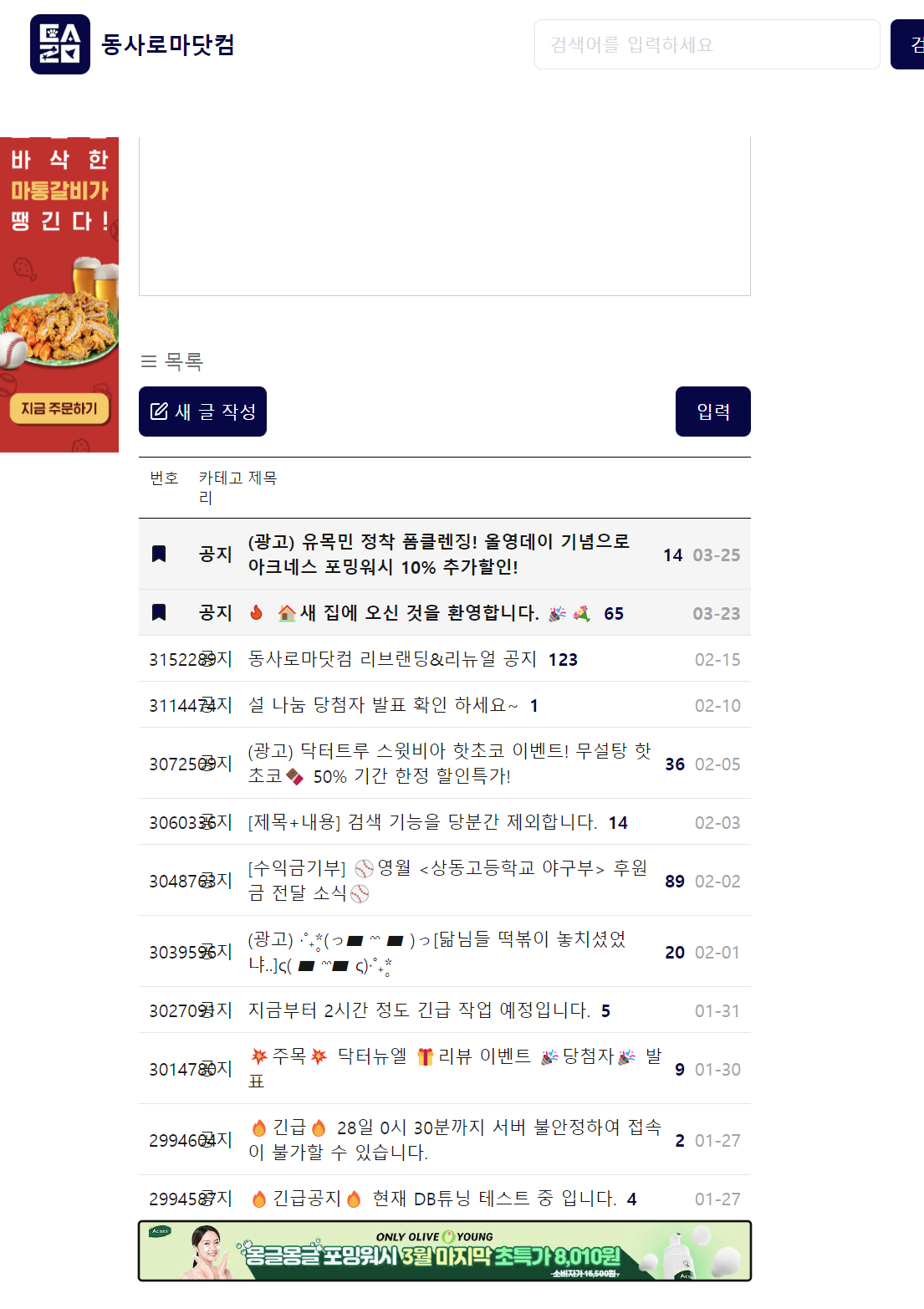 <동사로마닷컴 기본 공지> (리뉴얼 이후 ver.)
