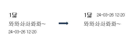 이런 식으로 작성자 옆에 작은 폰트로 작성시간이 표시 되는게 조금 간결해 보이지 않을까요