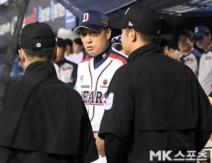두산 베어스 이승엽 감독이 심판진의 강우 콜드 경기 선언에 강력 항의에 나섰다. 7회 초 수비를 소화했음에도 7회 말 공격을 끝내지 않고 경기를 마무리한 까닭이었다. 여전히 3이닝의 공격 기회가 남은 상황에서 심판진이 매끄러운 경기 진행을 하지 않았다는 게 두산의 시선이다.