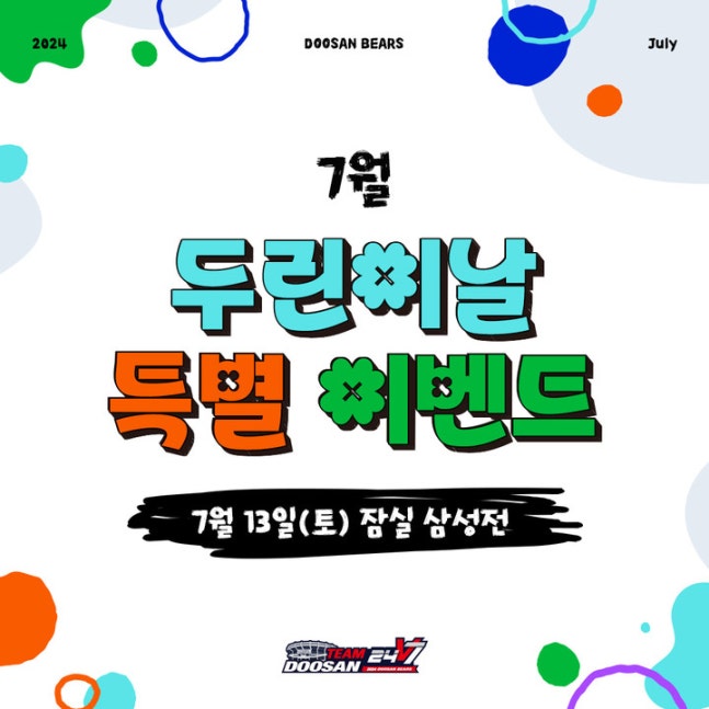 (MHN스포츠 박연준 기자) 두산베어스(사장 고영섭)가 13일(토) 잠실야구장에서 열리는 삼성라이온즈와 정규시즌 맞대결에서 '7월 두린이날' 행사를 진행한다.