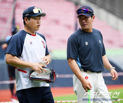 4시간 16분 혈투를 마친 다음 날 기분 좋게 훈련을 마친 양의지가 롯데 선수들이 도착하자 볼을 들고 다가갔다. 양의지가 기다린 선수는 윤동희. 사인을 받은 양의지는 볼을 소중히 챙겼다.