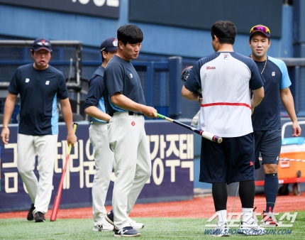 사인볼을 받은 양의지는 고마운 마음에 윤동희에게 타격 노하우를 전수해줬다. 윤동희는 양의지 타격 노하우를 한참 듣다 이해했다는 표정을 지은 뒤 훈련을 하러 자리를 떠났다.