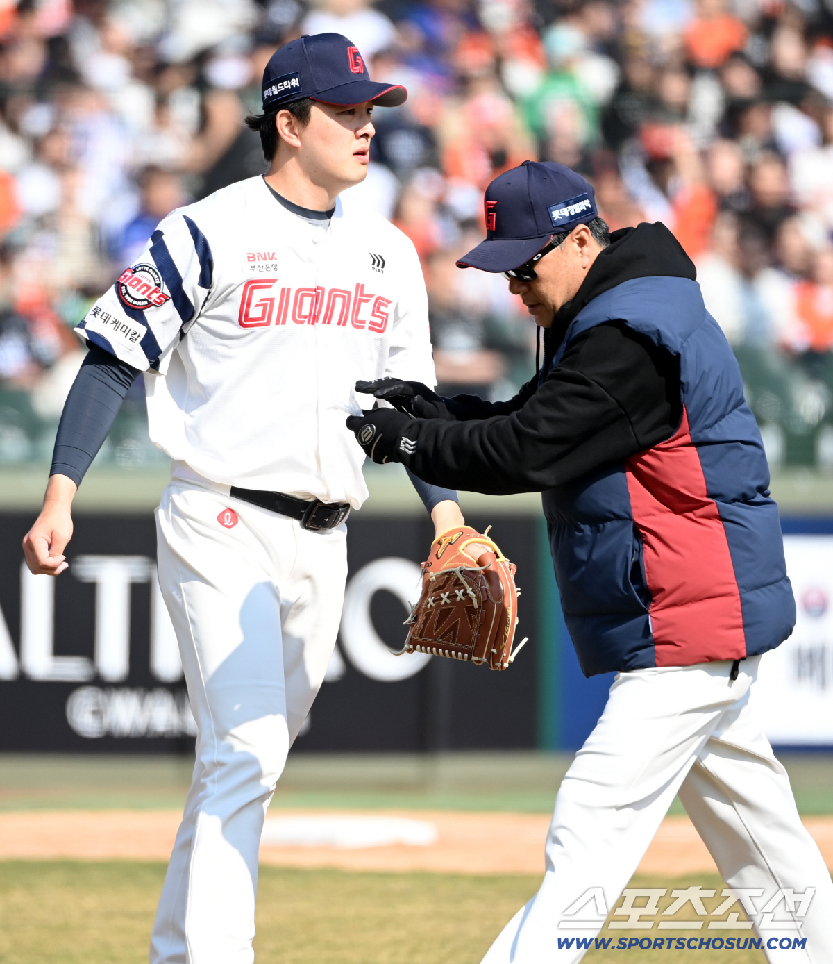 김원중에 파이팅 불어넣는 김상진 코치 ∧(˶•᷅ Θ •᷄˶)ง