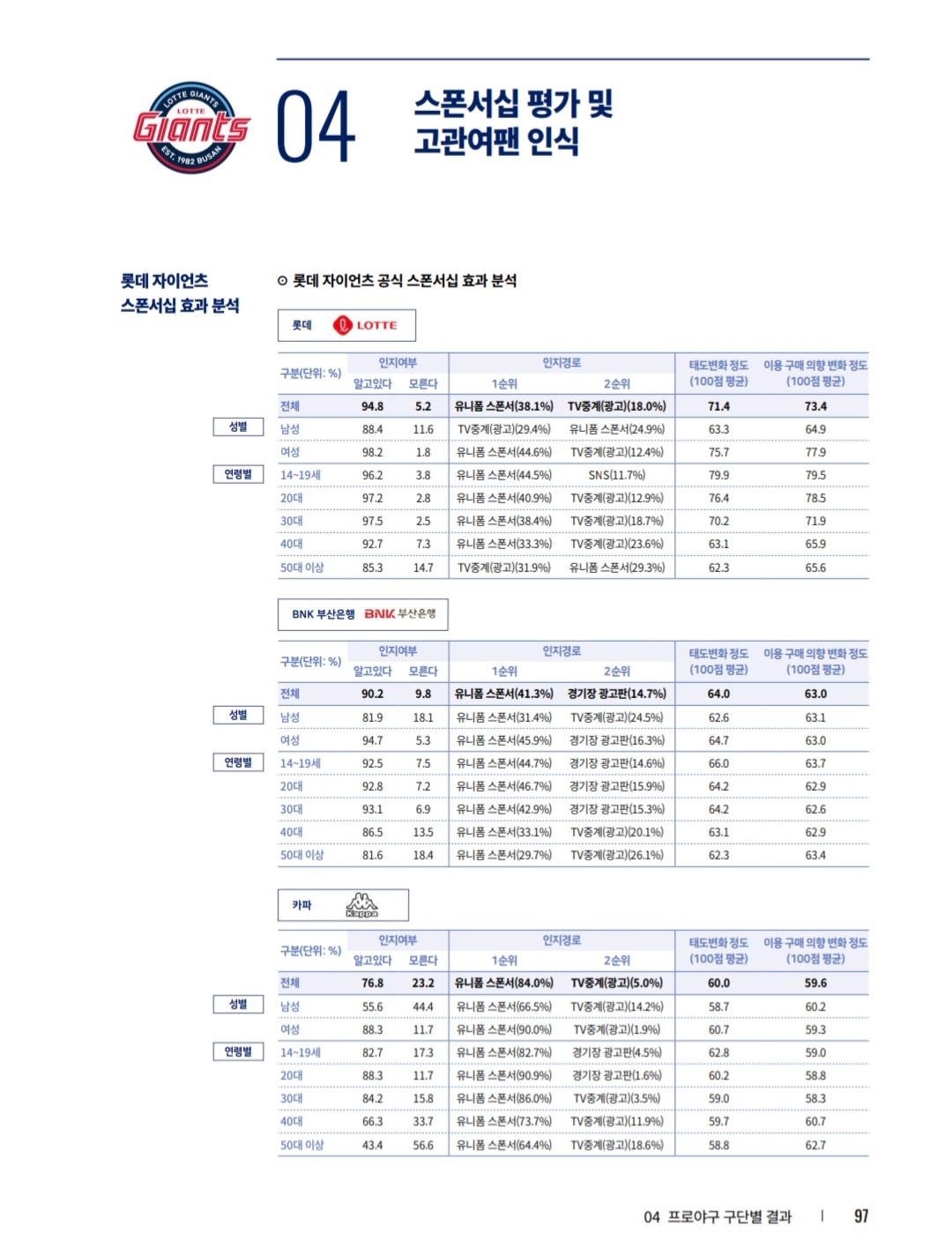우리 팬 성향 : 여자팬이 더 많고/ 20대 팬이 1위 30대팬이 2위 / 경남권에 팬 밀집 그다음 수도권팬이 많음